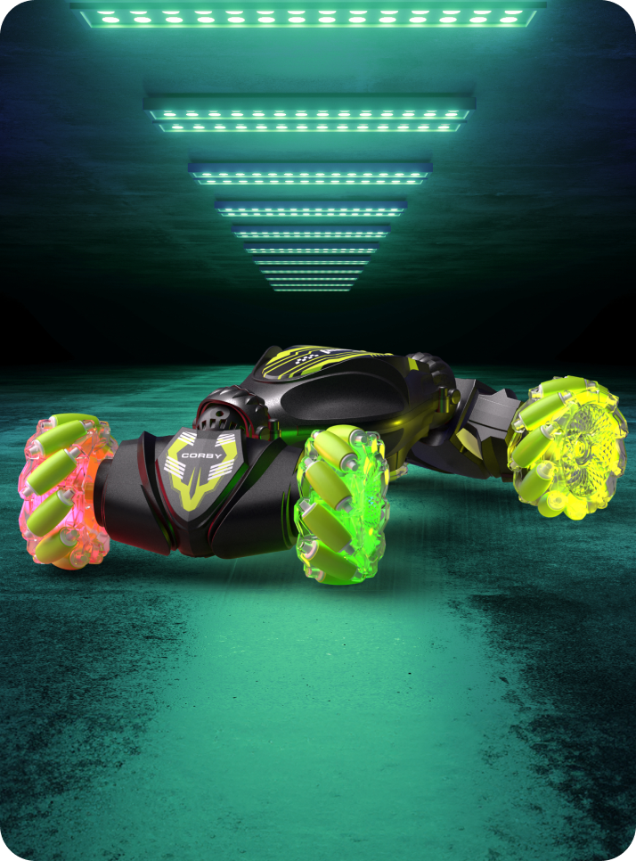 Corby Akrobat Araba, bileklik sensörleriyle hareketlerini algılar ve sürüşü bambaşka bir deneyime dönüştürür.