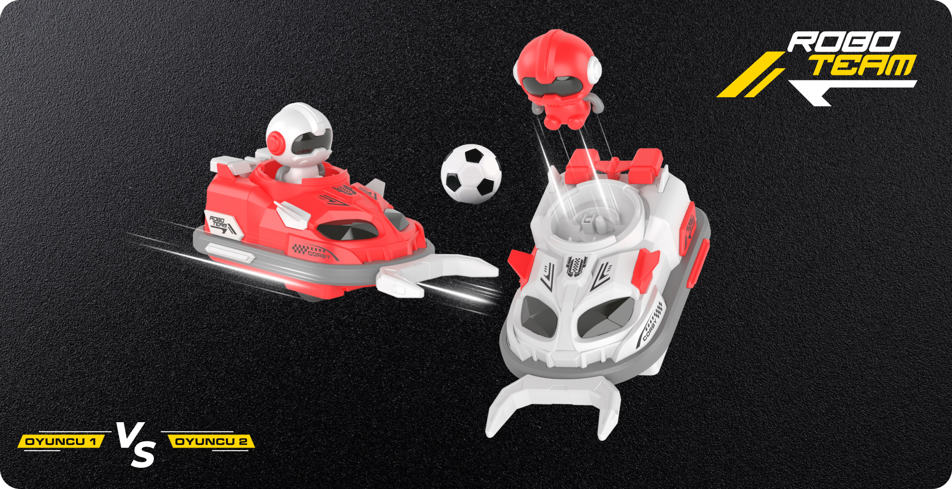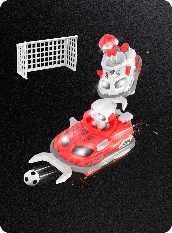 Paket İçeriği: 2 Adet Çarpışan Araba • 2 Adet 3.7V 500 mAh Batarya • 2 Adet Uzaktan kumanda • 2 Adet Şarj kablosu • 2 Adet Top kontrol çatalı • Plastik futbol topu • Kale • Tornavida