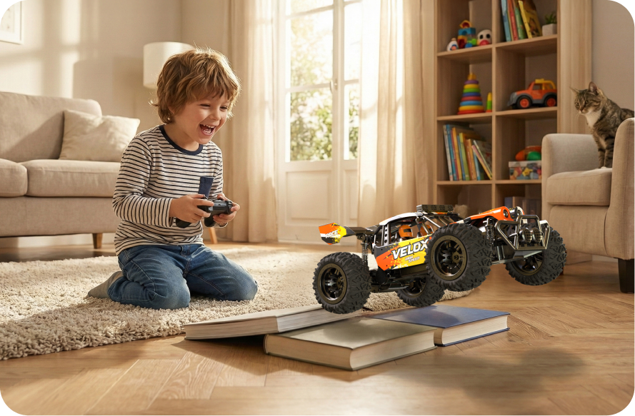 Uzaktan kumandasıyla hızını, dönüşlerini ve akrobatik hareketlerini kolayca kontrol et.