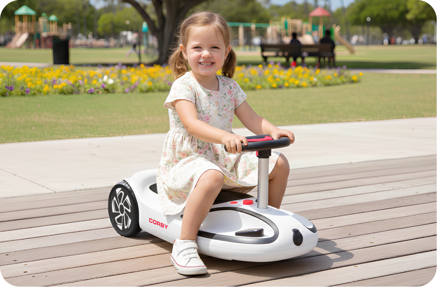 8 km/sa maksimum hızıyla, çocuklar için kontrollü ve güvenli bir sürüş deneyimi sunmak amacıyla optimize edilmiştir.