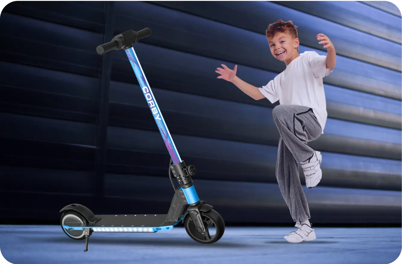 Corby CS50 Çocuk Scooterı, LED ışıklı yapısıyla eğlenceyi iki katına çıkarıyor.
